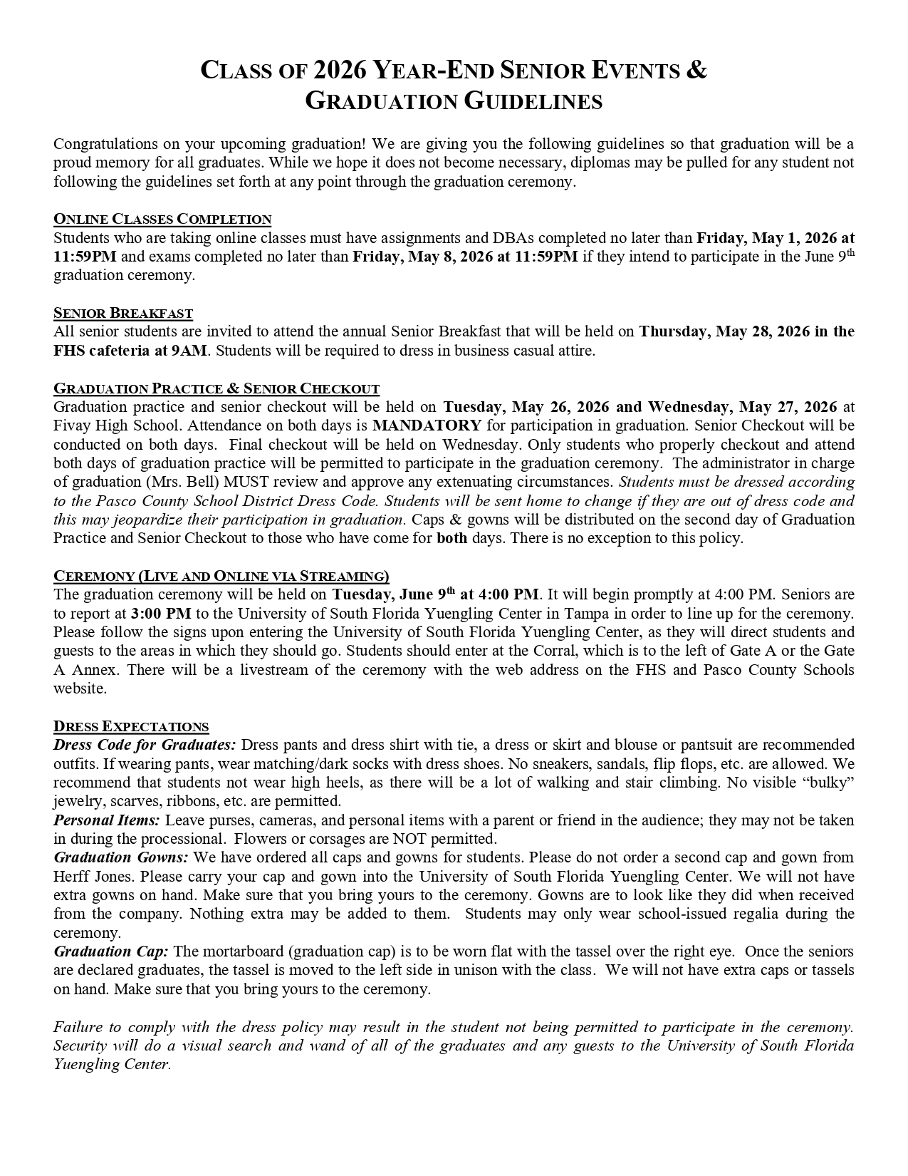 Senior Fees: TBA; payable through Rycor on myPascoConnect.