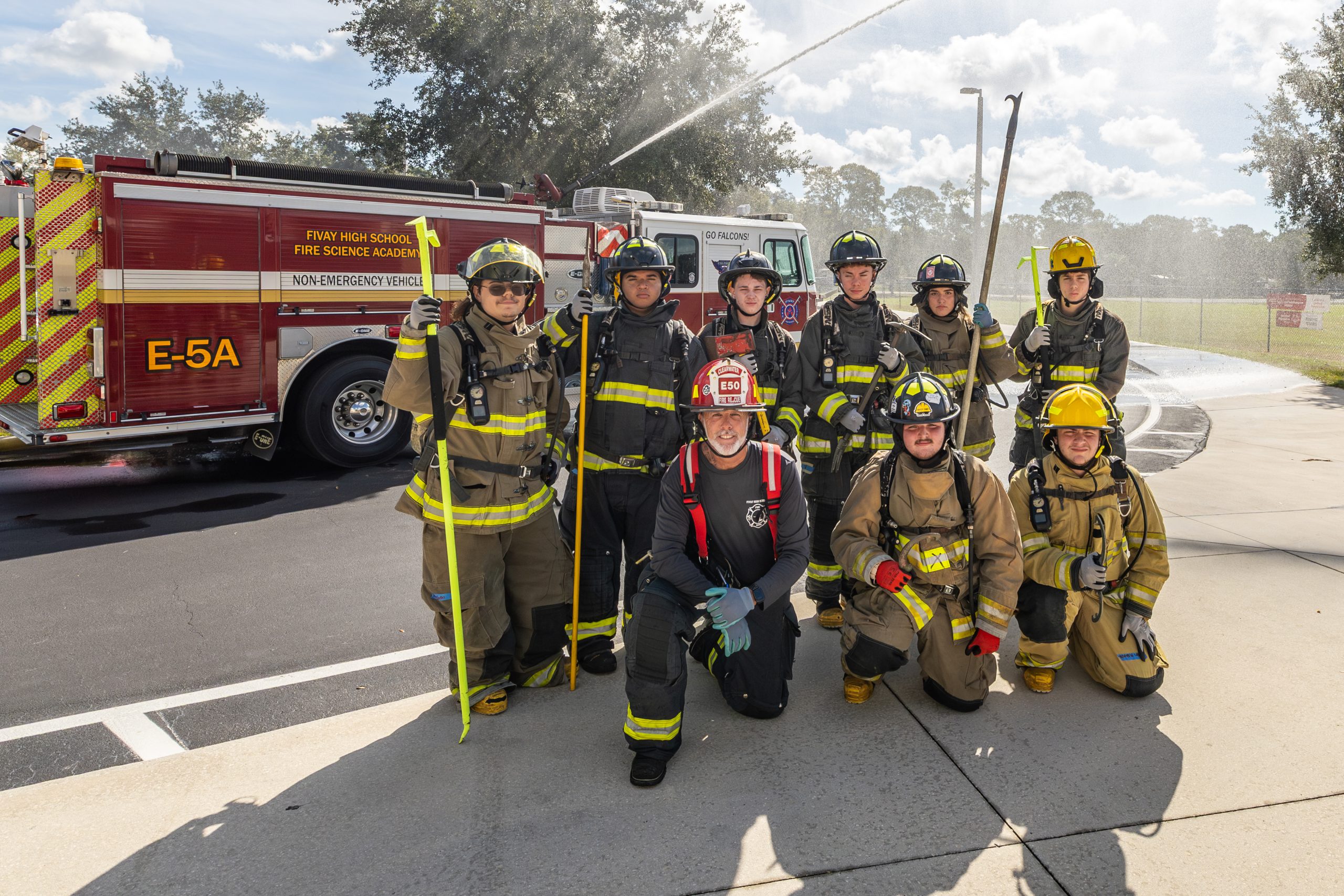 Fivay High School’s Fire Science Academy offers students a hands-on, career-focused education in firefighting and emergency response. Using professional-grade equipment and guided by industry standards from the Essentials of Firefighting, 7th Edition, students develop real-world skills through classroom instruction, practical training, and internship opportunities with Pasco County Fire Rescue. Applicants should be motivated, team-oriented, and ready to meet high expectations in physical fitness, academic performance, and personal responsibility. Graduates are prepared to pursue Firefighter I certification and careers in public safety. This program is ideal for students passionate about service, leadership, and making a difference in their community.